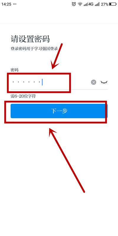 在弹出页面设置登陆APP的密码,输入完成,单击“下一步”