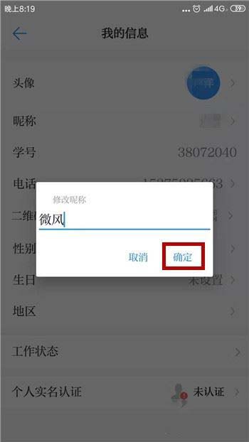 点击后会打开昵称的修改界面,输入新的昵称后点击【确定】。