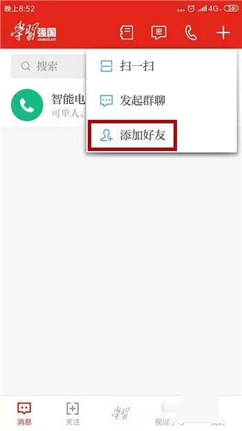 学习强国添加好友需要在首页里点击底部的【消息】选项。