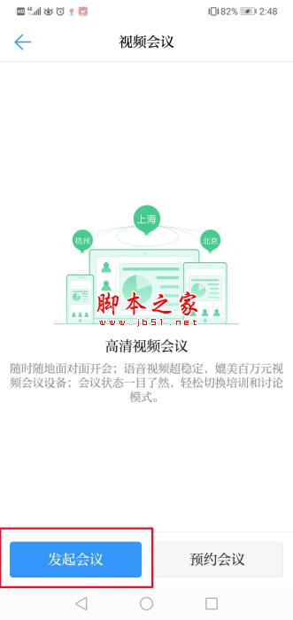 2、紧接着点击左下角的“发起会议”选项,大家就能够借助钉钉来连接远在外地的用户,随时随地开会交流!
