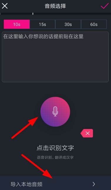 2、接下来需要通过麦克风录音或者导入音频文件的方式,让系统识别生成文字,点击右上角按钮一键制作文字视频!