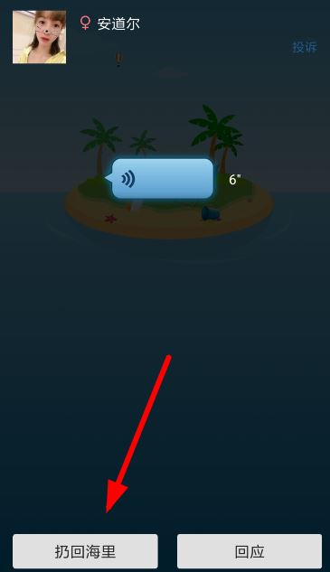 4、如果对自己捡到的漂流瓶不感兴趣,那么通过左下角的按钮可以直接将其扔回海里,从而寻找新的漂流瓶: