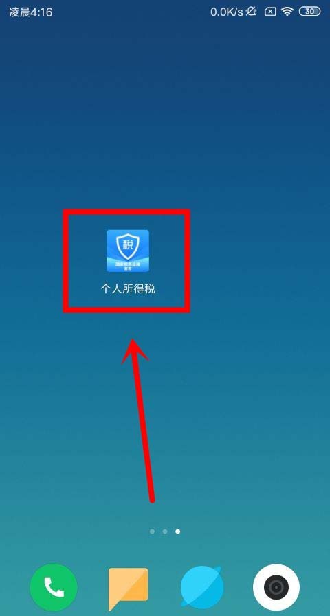 1、首先,我们在自己的手机桌面上找到已经下载安装完成好了的个人所得税软件,点击进入。