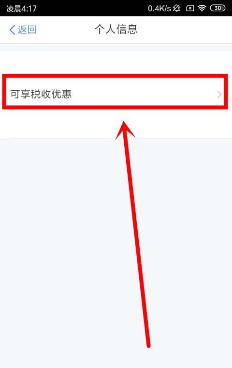 4、进入到个人信息这个页面中之后,在该页面中我们找到可享税收优惠这个选项,点击进入。