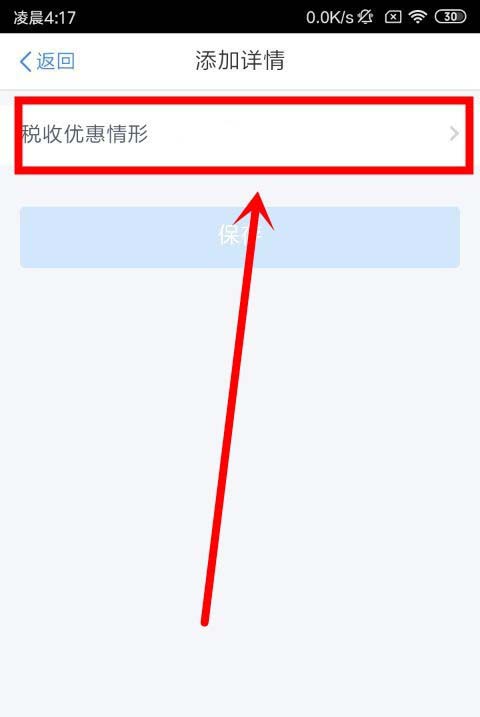 6、进入到添加详情这个页面中之后,在该页面中我们找到税收优惠情形这个选项,点击进入。