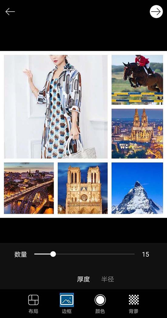 4、切换到边框选项,调整数量参数,这是设置为15.
