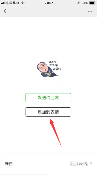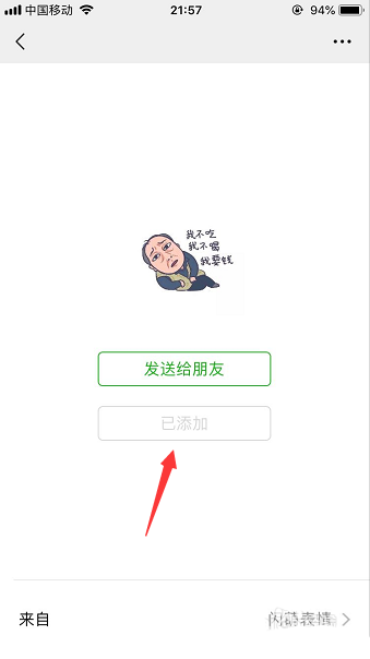 5、点击打开其中一个表情包,点击发送给朋友或者是添加到表情,如下图