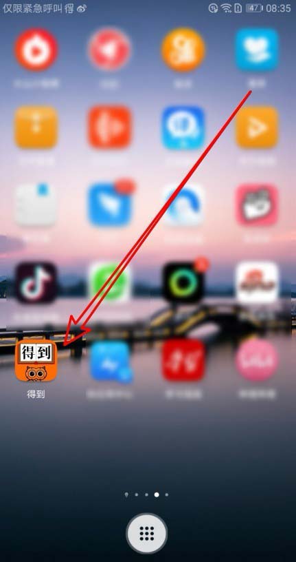 1、我们在手机上左右的滑动屏幕,找到安装好的“得到”图标。