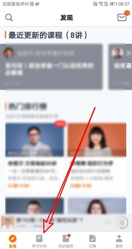 2、在打开的得到App应用主界面,点击底部的“学习计划”的选项卡。