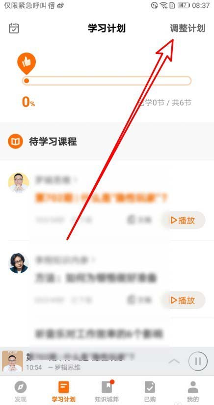 3、接着在打开的学习计划的页面中,我们点击右上角的“调整计划”的快捷链接。
