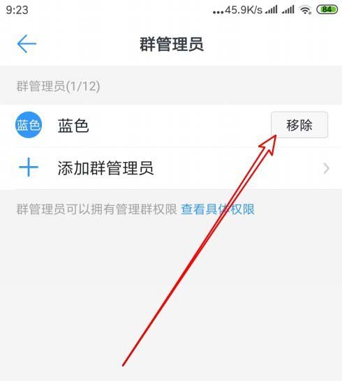 6、然后在打开的群管理员列表中点击要移除管理员右侧的“移除”按钮。
