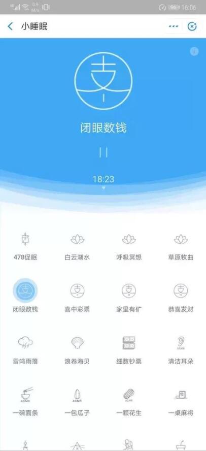 在支付宝的搜索栏内,搜索“小睡眠”程序后就能找到这个“闭眼数钱”功能,其实支付宝是把它定义为一种休闲音乐,这段音乐的总时长达30分钟。这30分钟内支付宝会不断循环“支付宝到账,XX元”且一直加下去,最终大概能加到上千元或者上万元,让人心里面听得美滋滋的,或者还真能帮助睡眠呢。在“小睡眠”程序里面,还有各种不同的音乐,其中各种数钱、中彩票的音乐就占了大部分,支付宝还真是皮呢。