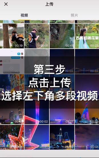 3、点击上传选择左下角多段视频;
