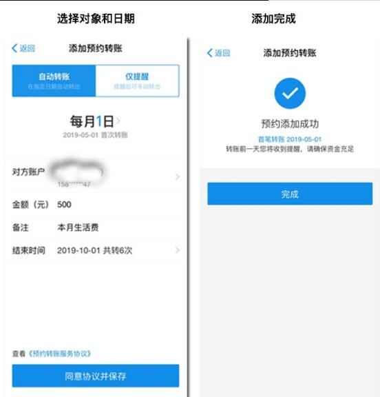 选择转账对象和每月转账时间、转账周期