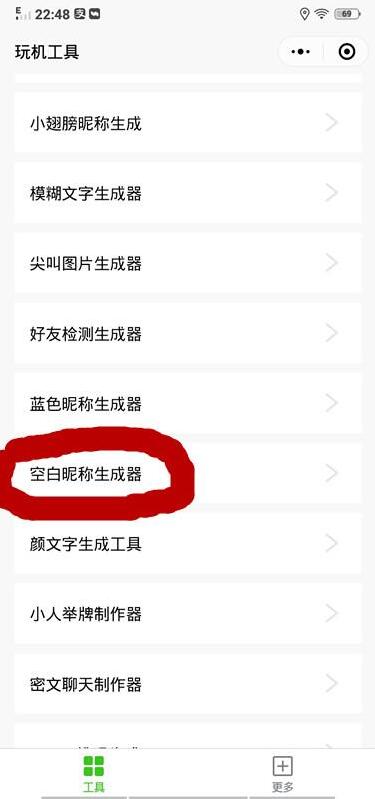 第二部:在工具页面中找到空白昵称生成器