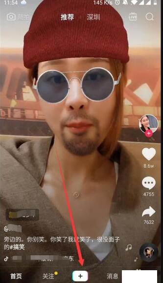 1、首先我们打开抖音,然后在抖音中我们可以看到如图所示的拍摄按钮,点击这个按钮进行拍摄;