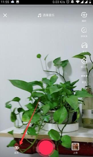 2、进入拍摄页面后我们需要页面的拍摄按钮左边点击道具按钮;