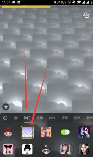 3、进入道具选择后我们可以点击热门中的很多圆柱体的这个特效;