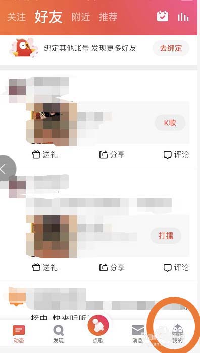 2、进入到全民K歌的页面之后,在页面底部找到最后一个菜单我的,进入到已登录找到的个人中心页面。