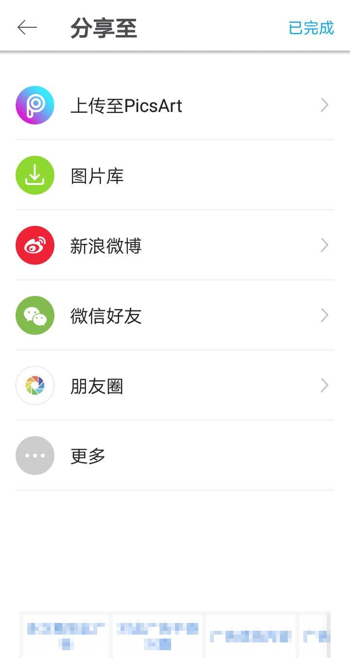 6、确认后,点击箭头,进入分享至页面,选择图片库即可。