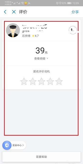 5、点击进去之后,可以看到订单详情,如果没有对司机进行评价,可以进行评价,如下图所示: