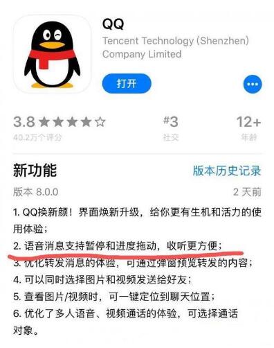 QQ的iOS版v8.0正式版更新后新增语音进度条功能并支持拖动,而安卓手机上的手机QQ版本还是7.9.9版本,预计在4月底或5月初会更新至8.0.0版本,届时就会一同上线语音消息支持暂停和进度拖动功能即大家想要的QQ语音进度条功能。