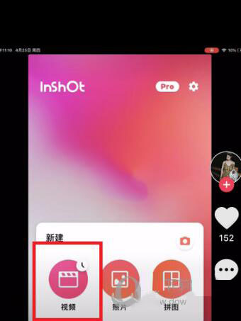 2、打开inshot手机软件,点击“视频”。