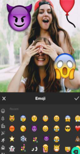 4、选择一张图片,点击贴纸,找到贴纸上的表情,放上合适的表情之后,点击√