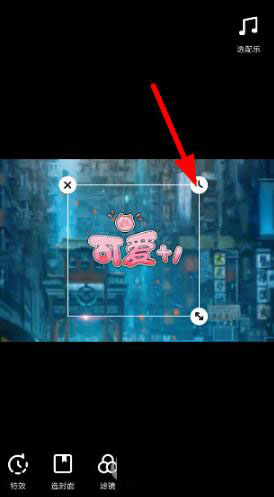 3、成功给作品添加贴纸特效之后,再来点击贴纸唤起菜单,选择右上角的按钮(如下所示),就可以修改默认的显示时间了。