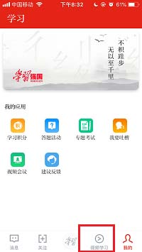 2、点击底部导航中的【视频学习】