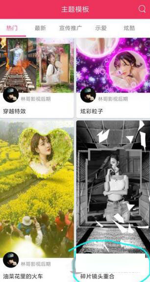 打开“简影”APP,在热门模版中可以看到一个【碎片镜头重合】的特效;