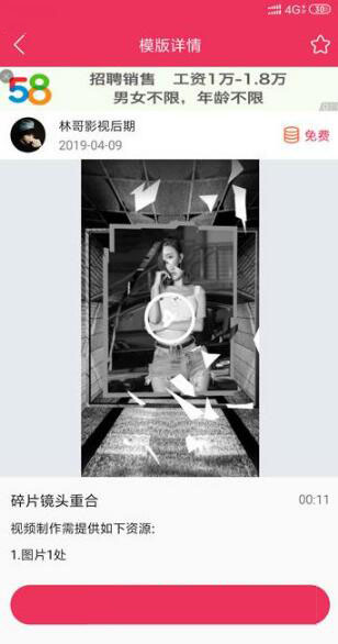 大家需要提供一张照片用来制作这个视频,点击一键制作就可以成功使用这个特效了;