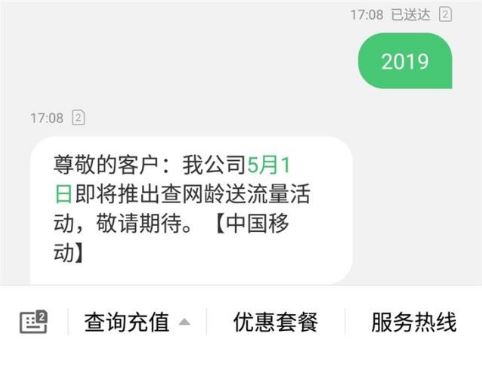 中国移动查网龄送流量发什么