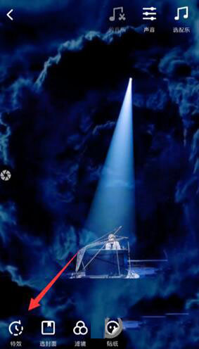 2、进入到视频编辑界面之后,大家可以通过页面左下角的“特效”选项,从中找到作品所需的“三屏黑白”特效。