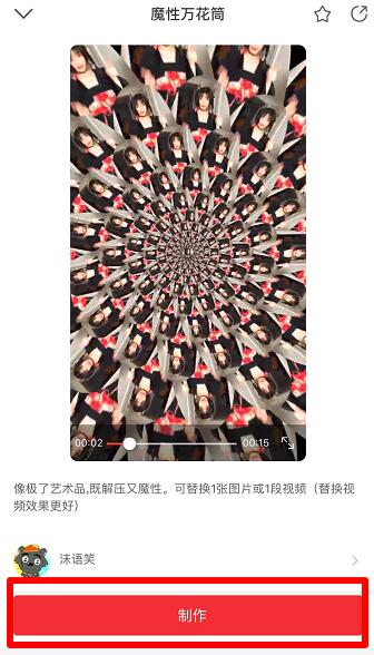 2、点击进入“魔性万花筒”的界面之后,从下方选择“制作”按钮,这样就能够导入素材进行编辑了,非常方便实用。