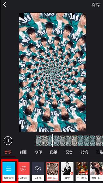 3、之后大家还可以导入添加本地音乐,设置“封面”、“水印”、“贴纸”、“滤镜”等效果,然后保存作品分享上传到抖音里面。