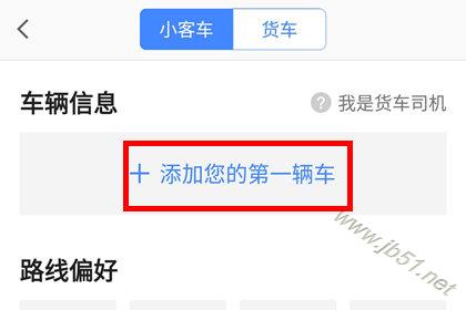 第三步:点击导航设置,可以添加小客车、货车两种车型。
