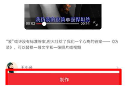 2、进入该模板界面之中,我们可以查看到有关这模板的简单介绍,它可以用来替换一段文字和一张照片或视频,接着我们点击底端的“制作”按钮即可进行下载,进入到编辑界面,导入手机本地的素材文件进行编辑。