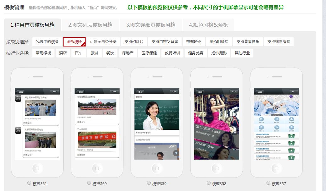 (2)利用现有的模板制作工具:例如微享宝微网站模块提供300多套套多行业微网站模板供选择,功能包括自定义分类、二级分类、底部导航菜单、一键导航、一键拨号、3g相册、背景音乐播放、素材库、DIY宣传页、轮播背景图、留言板功能等;添加外链的时候可以直接从功能库选择,使用极其方便.