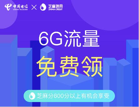 支付宝和中国电信推出了新活动,知道支付宝芝麻分600以上就可以免费领取6G流量,如果你是中国电信用户,赶紧来参加吧。下面教大家领取方法。