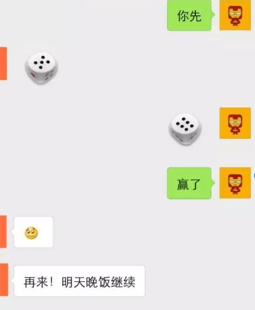 第三步:关闭飞行模式,把网络打开,就可以随意的发送自己想要的骰子点数了!,稳赢!我今天就赚了两顿饭~哈哈哈哈,比如对方扔了一个5点,