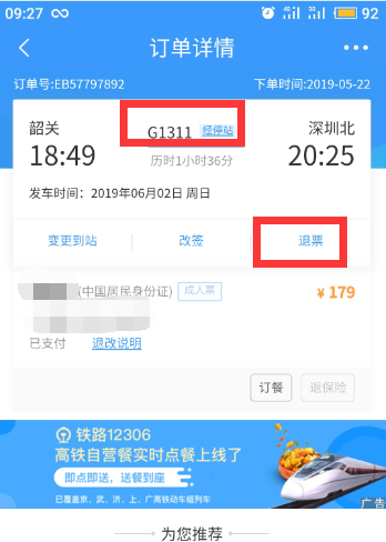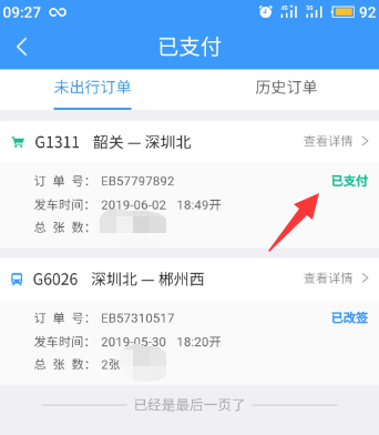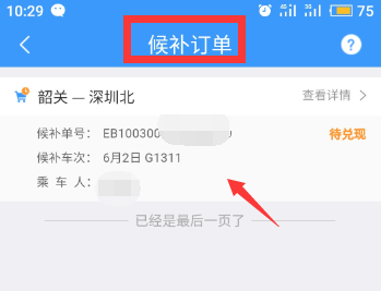 2、点击可以看到候补订单票已经兑换成功了