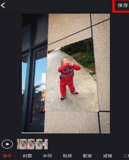 3、完成导入之后,软件就会帮你生成特效视频,随后再来进行音乐、特效、水印方面的编辑,点击右上角按钮保存就可以了。