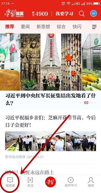 3、在页面最上面一行找到“强国通讯录”按钮单击