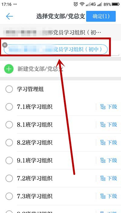 5、在打开的支部所在的所有学习组织中找到要更改的学习者选中