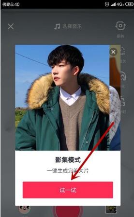 进入到录制界面后会提示我们影集模式,点击下方的【试一试】。