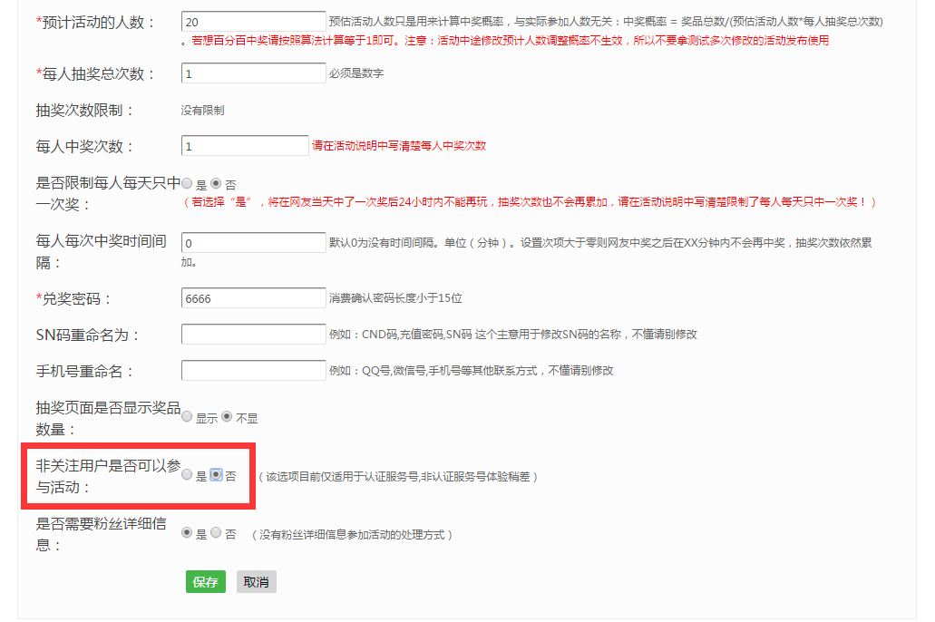 第四步:公众号抽奖活动怎么做关键是引流增粉,与微信功能高度整合,“关注微信公众号后才能抽奖(先关注再抽奖)”便是一项重要功能,可帮助微信公众号快速吸引粉丝增加关注量。具体的提示信息也是可以在后台设置的。我们一般建议提示信息可以这样写:“请进入xxx公众号,点击下方菜单进入抽奖。”,提示信息中可插入您公众号的二维码方便用户长按即可关注。 这样写提示可以重点突然让用户从公众号作为入口进入抽奖,而不要过分高调的强调“先关注再抽奖”