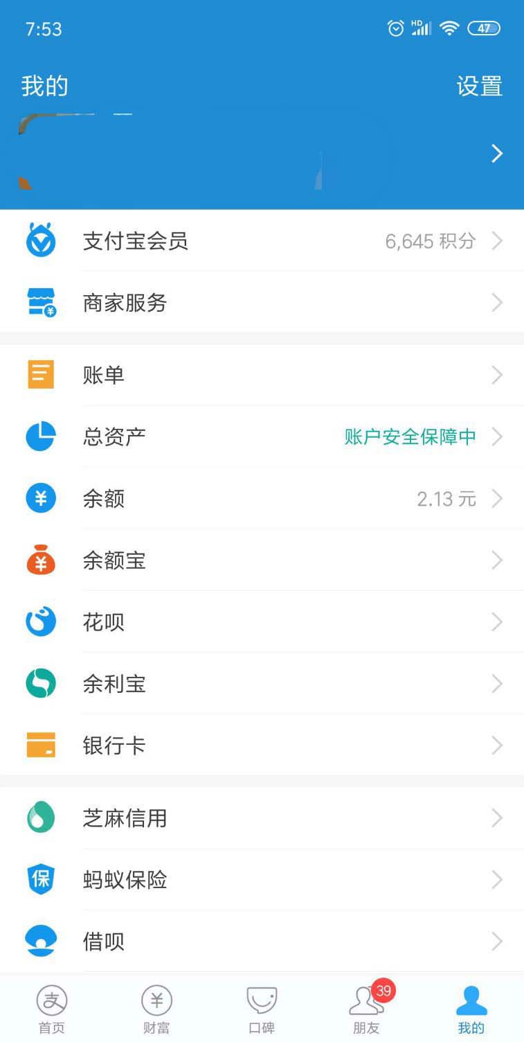 2、进入我支付宝界面后,我们点击“支付宝会员”。