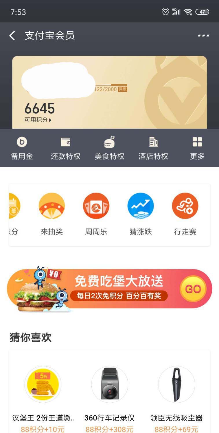 3、进入支付宝会员后,我们点击“行走积分赛”活动。
