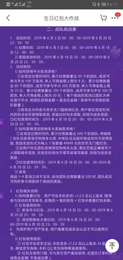 19、累积拉赞500的团队还有机会抽取清空购物车大奖,获奖的团队每人都可以获得一张49999元面值的红包。领取时间为6月18日到6月30日,逾期视为放弃。